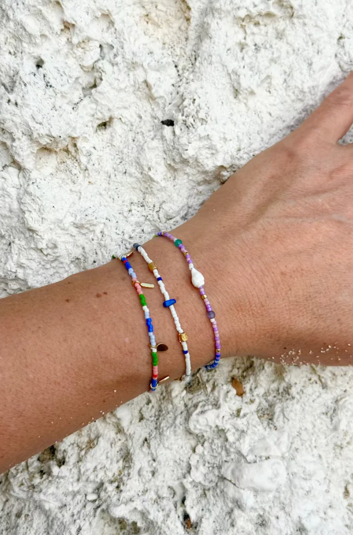 Cool, dreamy tones in a playful shell bracelet. Stack or wear alone.