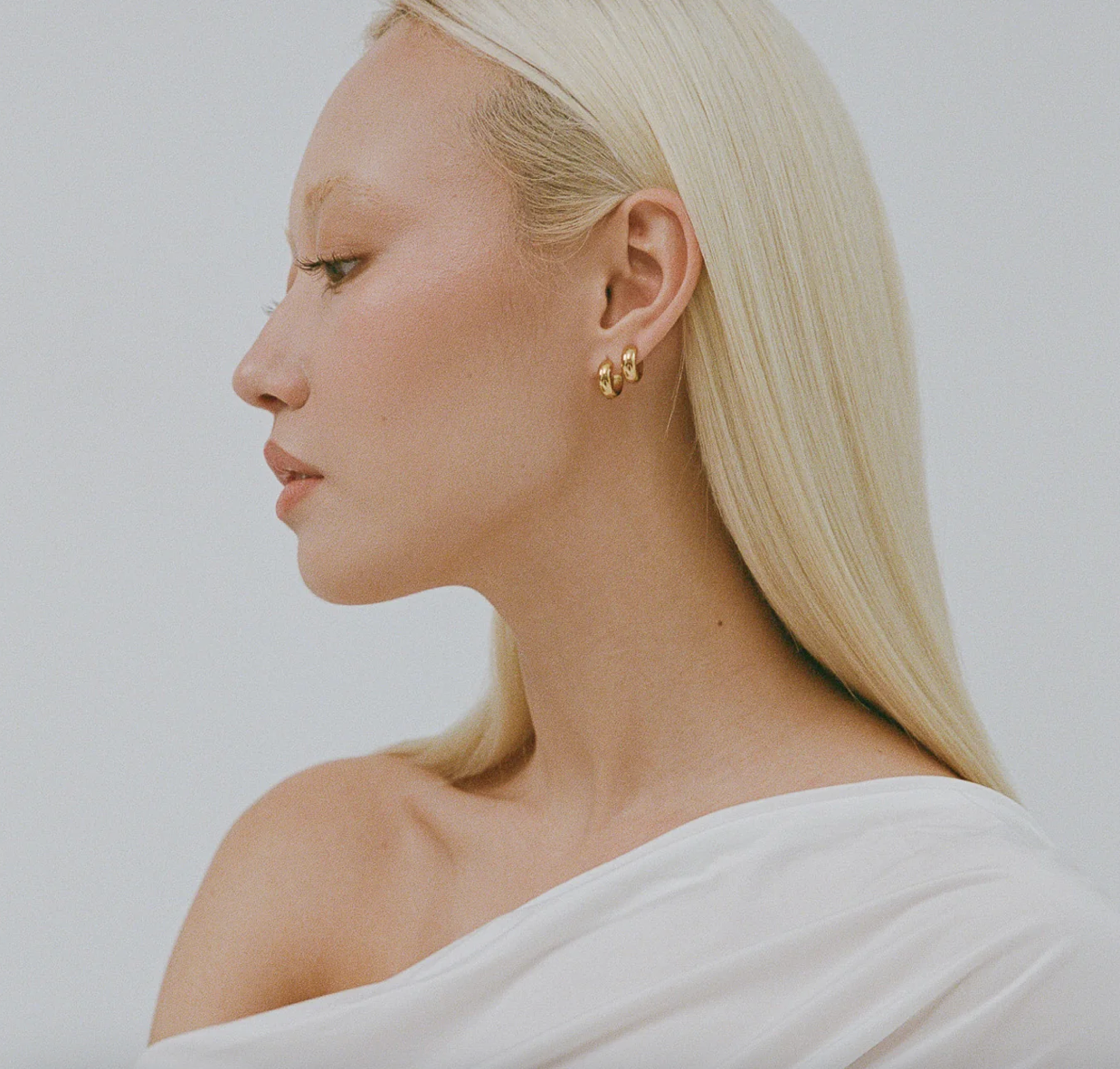 The Petite Thick Huggies are the mini update to Porter’s best-selling hoop design. At 8mm, these petite gold huggies are the perfect subtle statement — classic, versatile, and made for everyday wear.