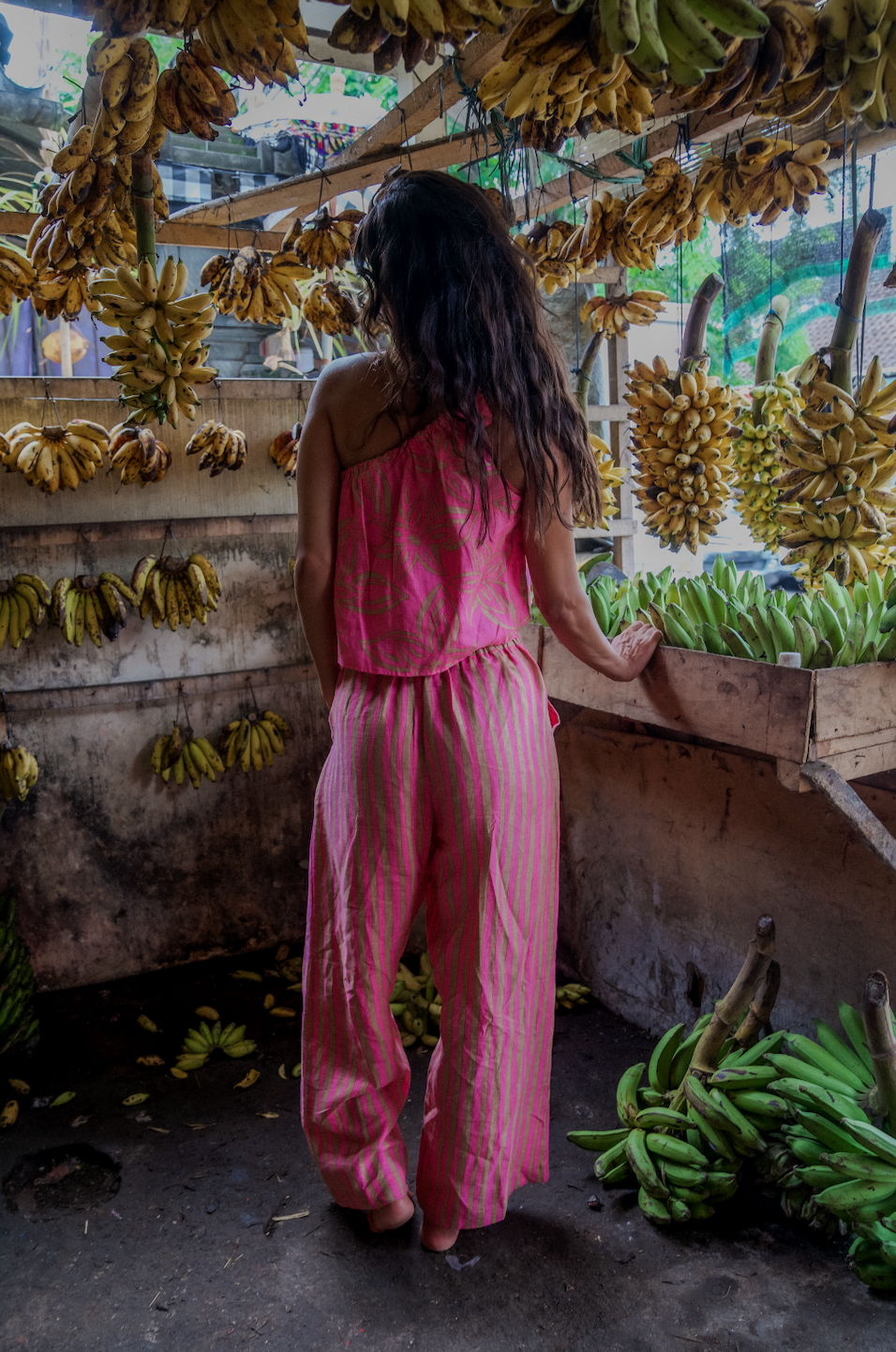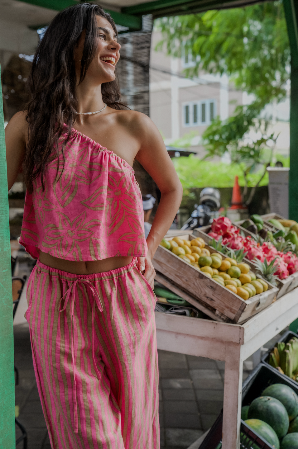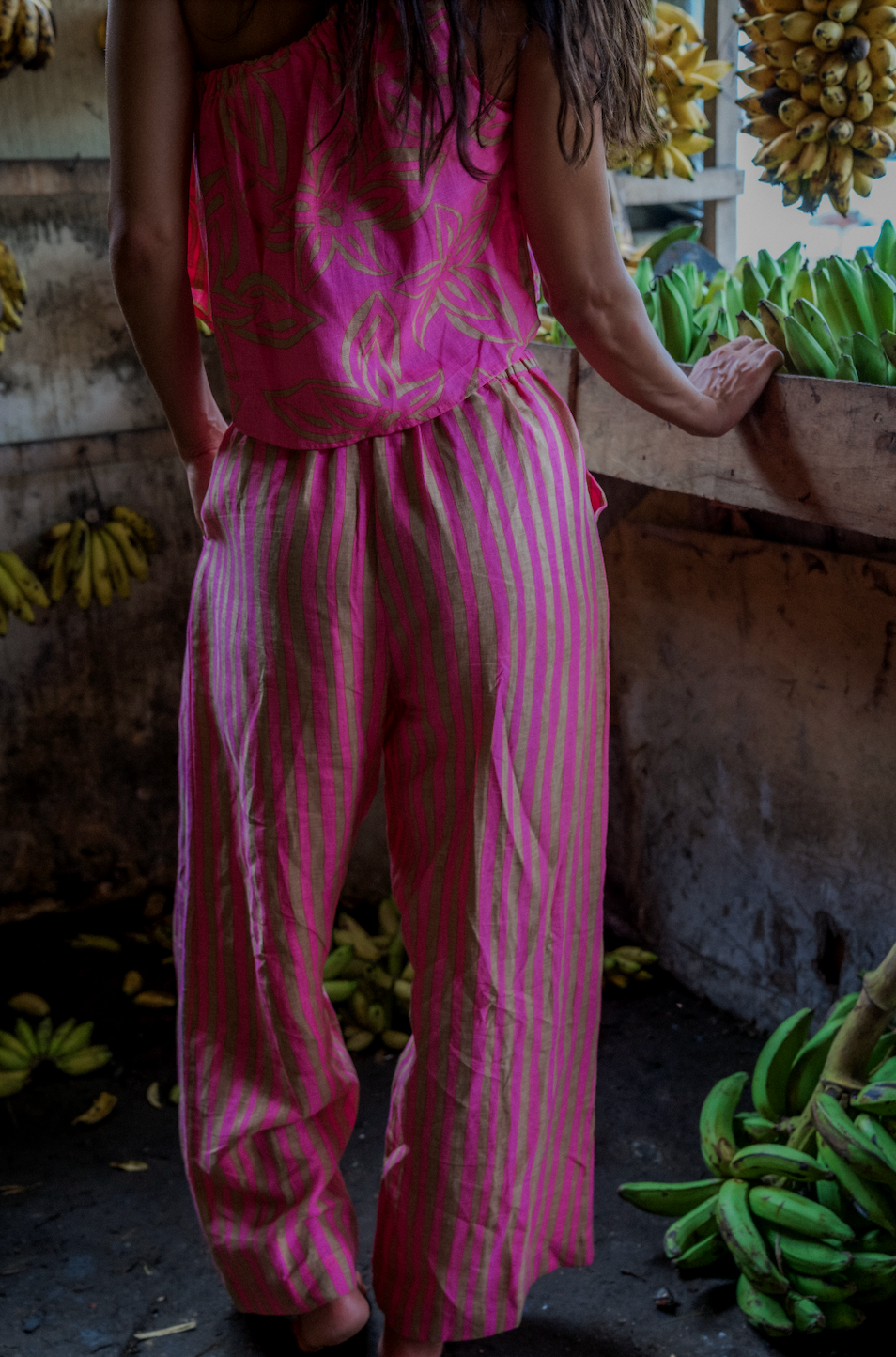 The Nia - A new and updated fit with a drawstring tie, elasticated waist, and wide-leg silhouette. This style is our new linen essential made for easy wearing and long adventure filled days. Pair back with one of our Pops + Co linen tops for a statement set.
