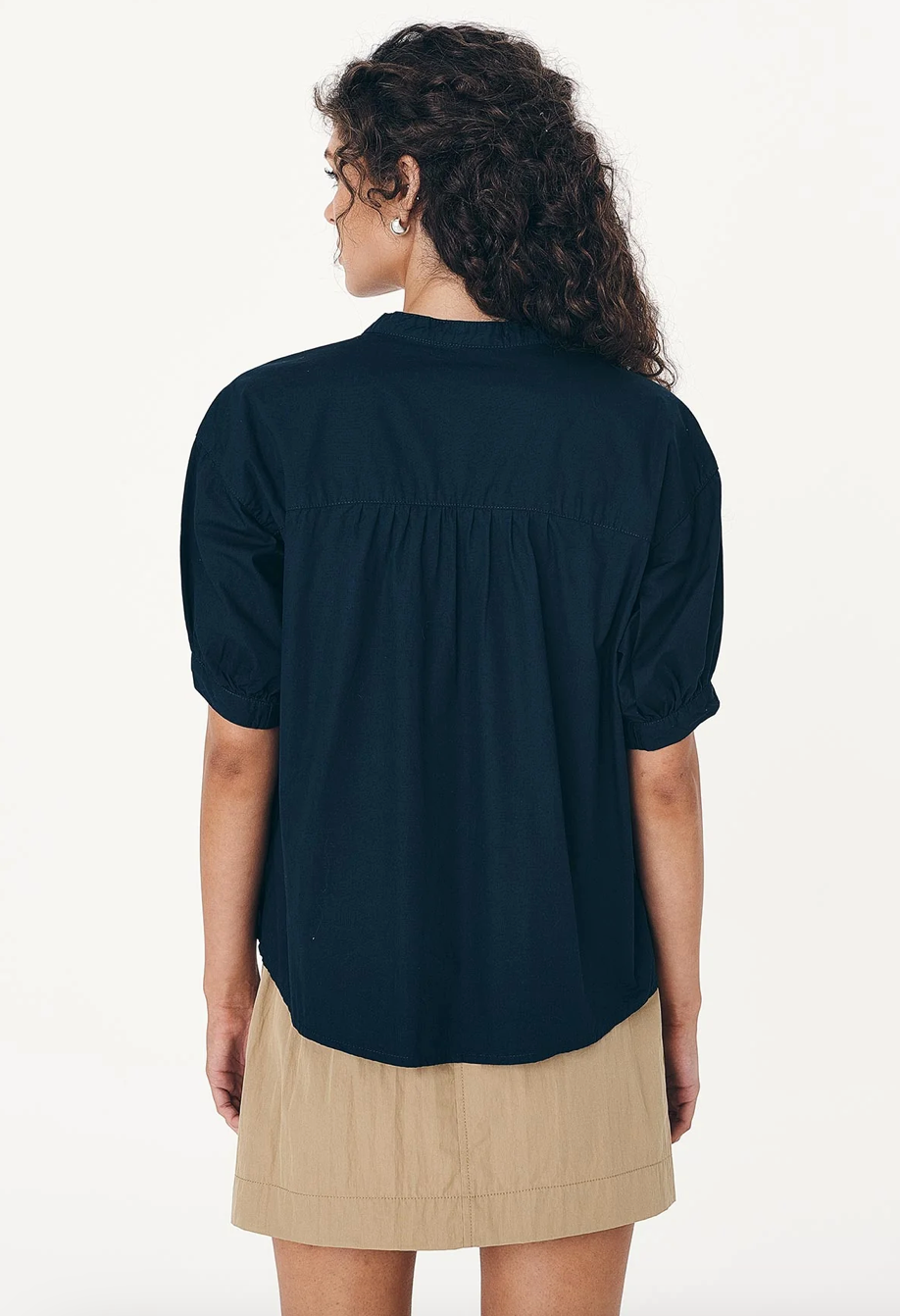The Cora Blouse returns in crisp cotton with a relaxed button-through cut. Defined by a mandarin collar and voluminous sleeves gathered at the cuff, it’s a ROWIE icon with refined ease.