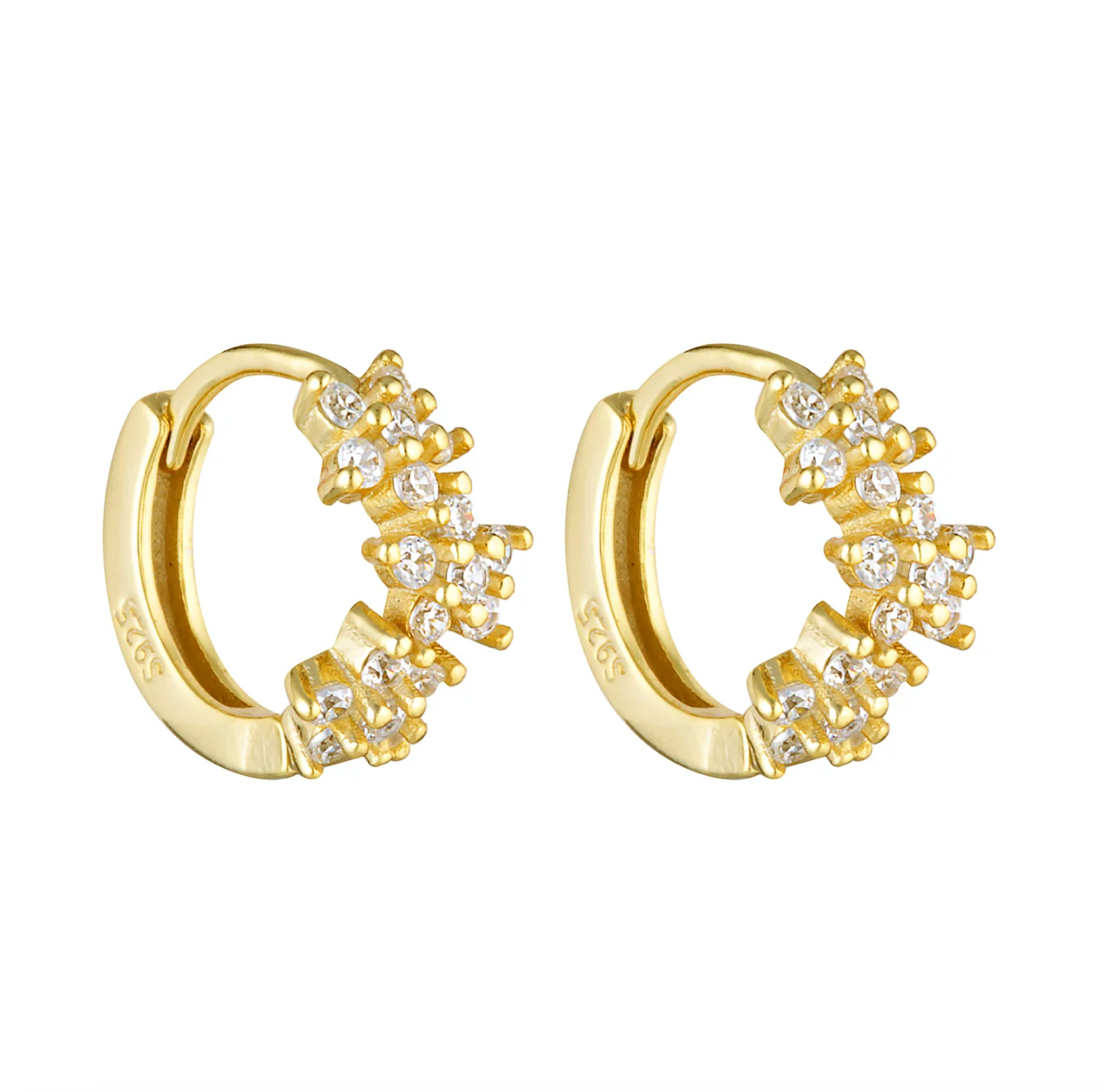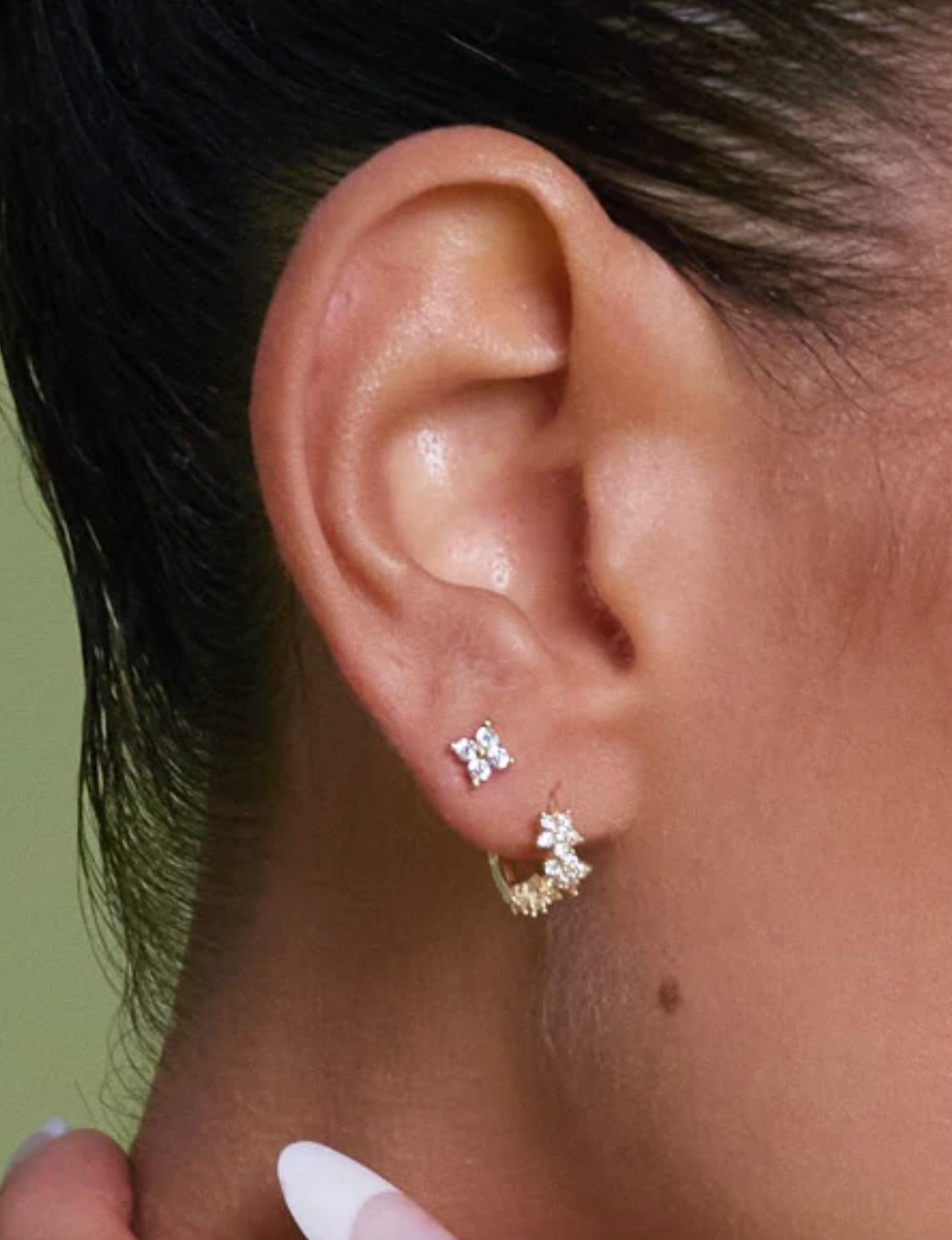 The Galaxy Huggies are Porter’s fresh update on our iconic Angel Huggies. Designed with dainty sparkle and versatile sizing, these gold huggie earrings are perfect for stacking across your first, second, or third piercings.