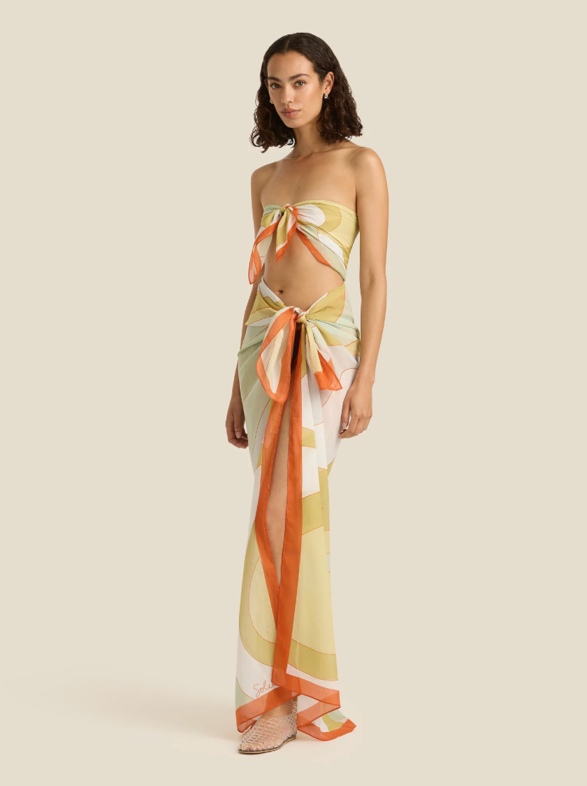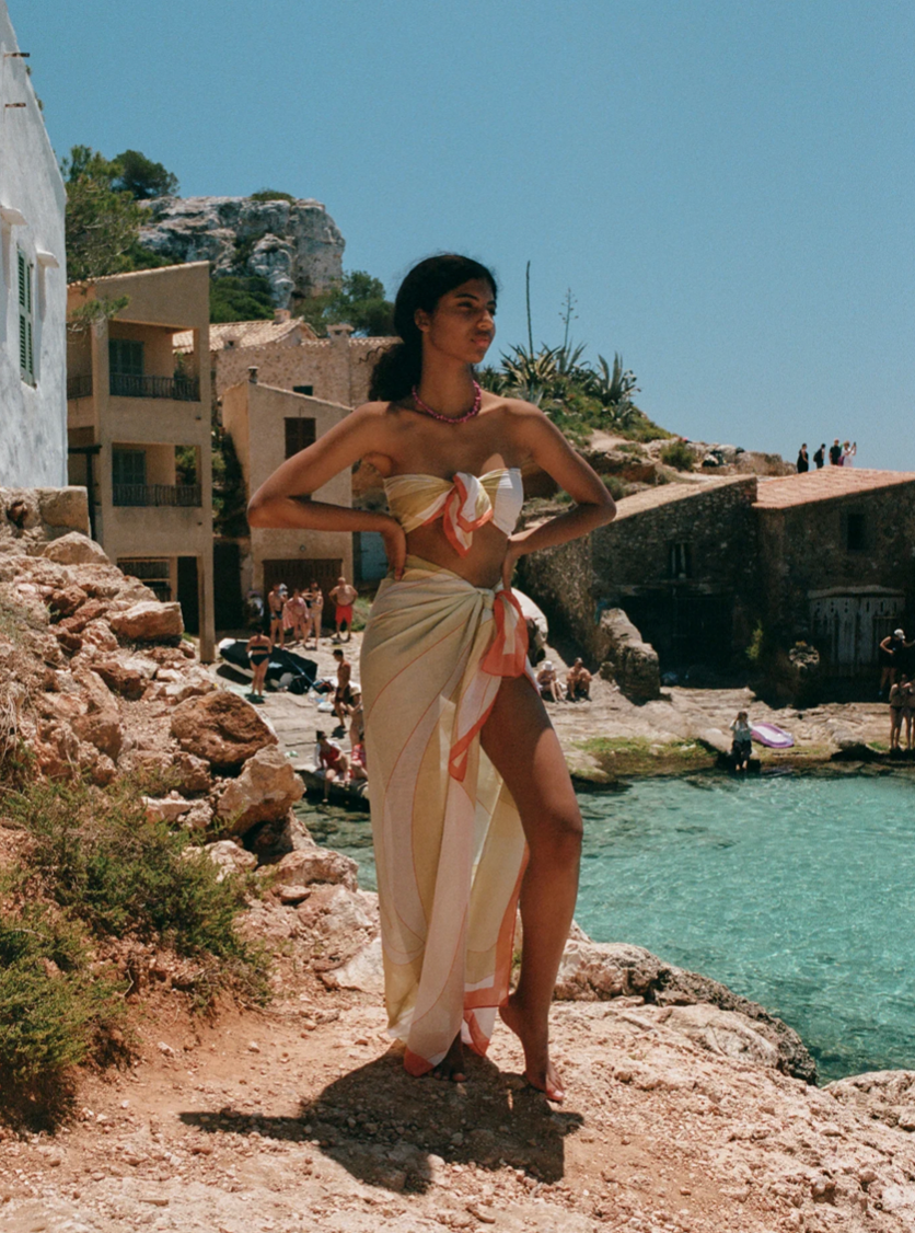 Where it all began. The Square Pareo — our signature piece — a perfect square of lightweight organic cotton, made with all your over-swim needs in mind. Versatile and effortless, it can be tied as a mini or midi-length beach cover-up, or folded into quarters and worn as a smaller square scarf.