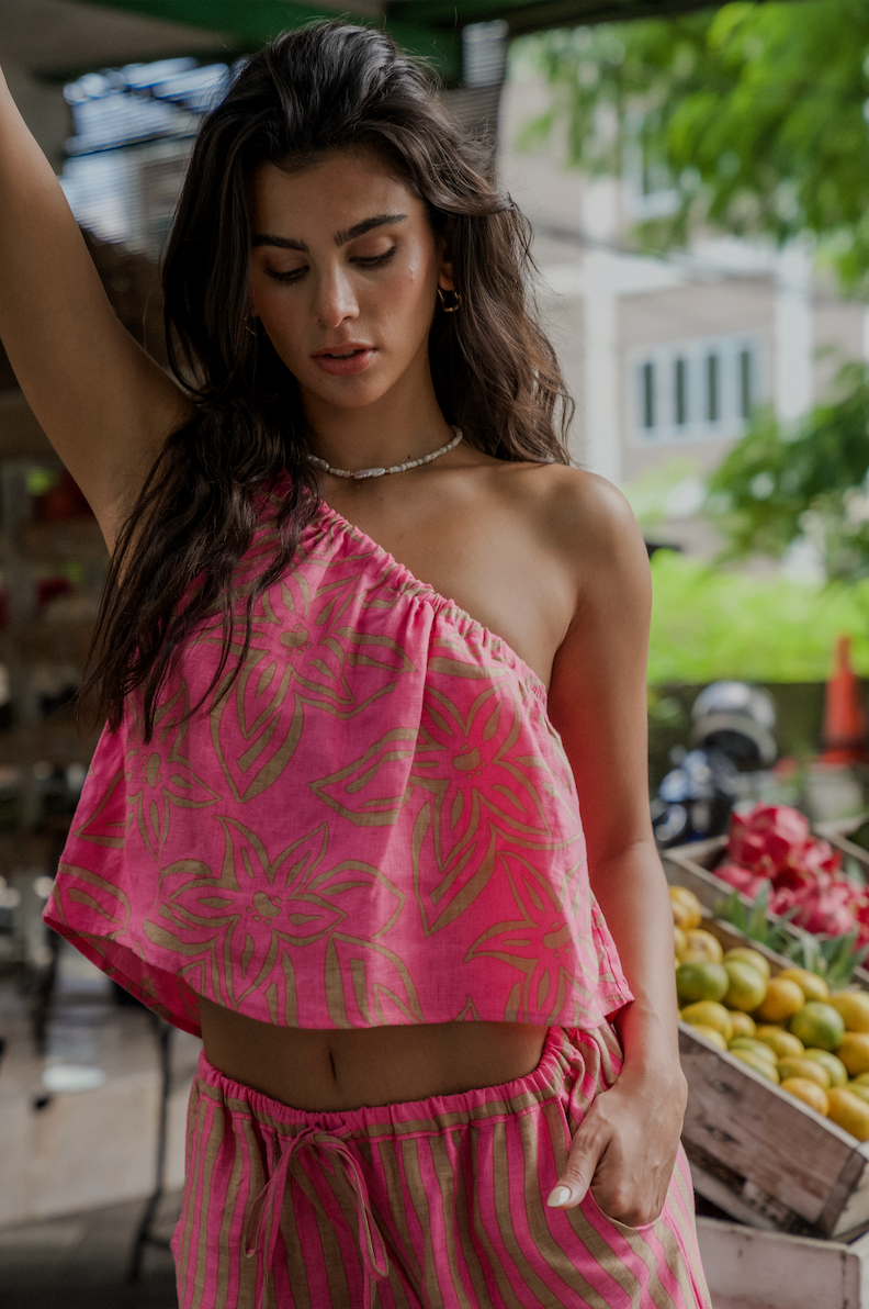 The Remi - With her cropped style and gentle drape she is perfect for effortless day to night styling. Featuring an asymmetric neckline with adjustable tie. Pair her back with one of our much loved designs for the ultimate set.